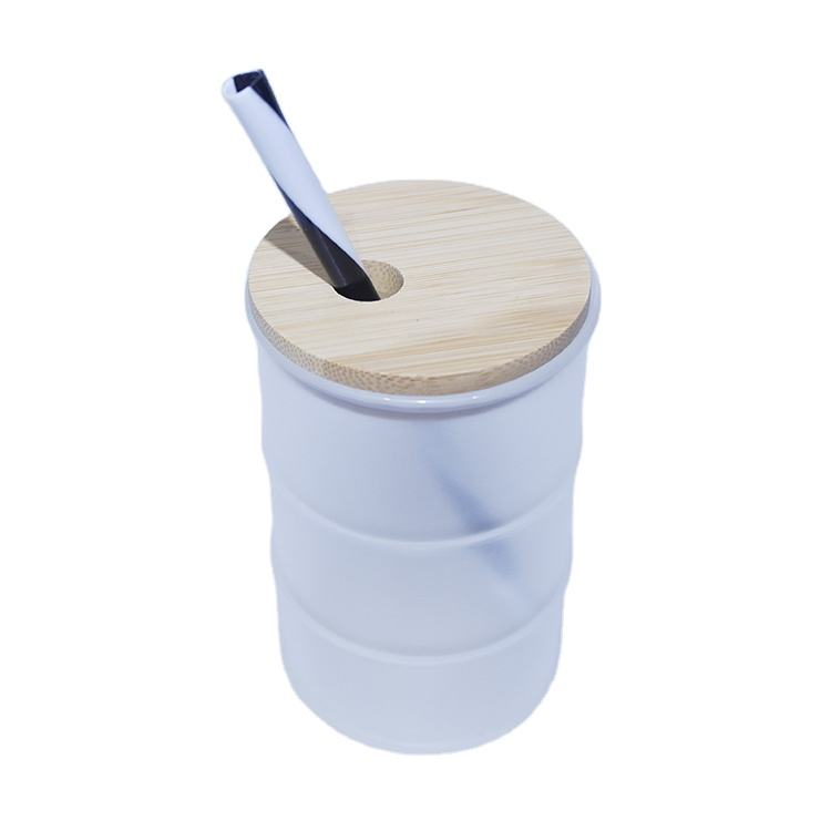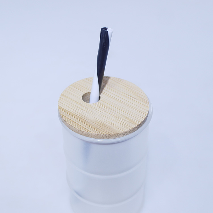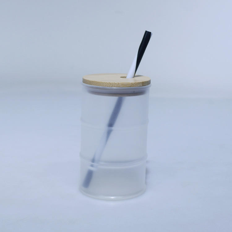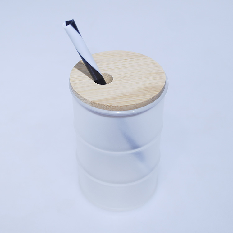 Creative Sandblasting Glass Cups With Bamboo Lids