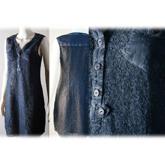This is a crochet dress that is pigment dyed. It comes with a dainty and elegant design in dark blue. This dress is made with excellent workmanship and attention to detail.