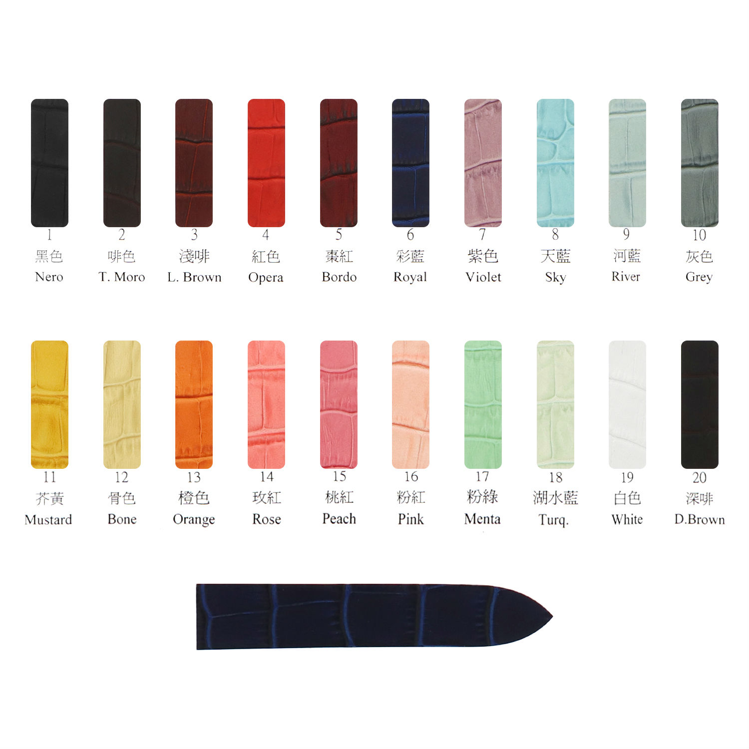 Balanced and refined, this watch band is sure to add texture and depth to your watch designs. The calf leather band is embossed with a delicate crocodile motif for an exotic and luxurious look, while the matte finish brings in a contemporary element to balance out and tone down its pronounced design, making it suitable for a wide range of everyday watches.