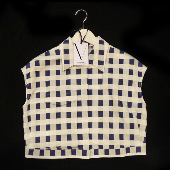 This is a vintage-style cropped sleeveless shirt with blue-and-white squares. It comes with a loose-fit design and is comfortable to wear. It goes flawlessly with high-waist bottom and is a must-have for your summer wardrobe.