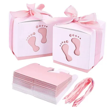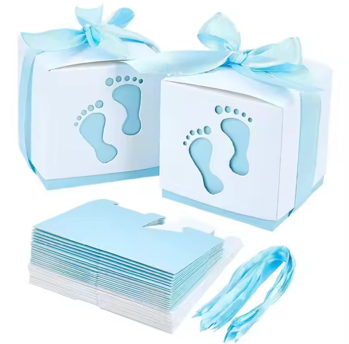 Cross-Border Creative Baby Full Moon Gift Candy Box Hollow Baby Footprints Coated Paper Stamping Printing Wholesale for Sugar