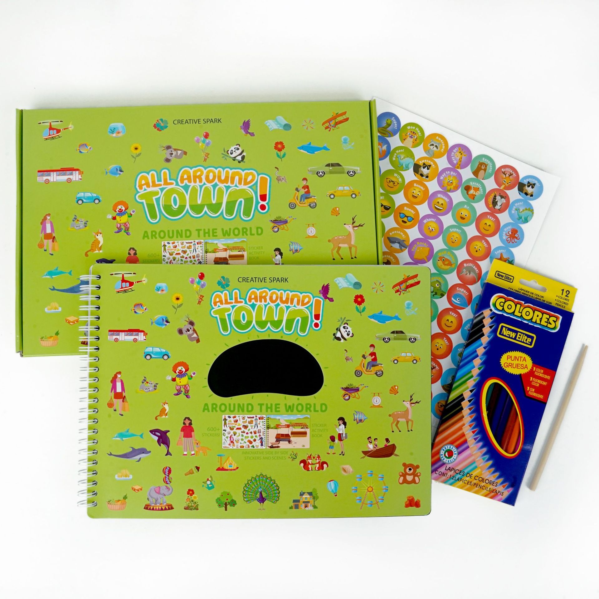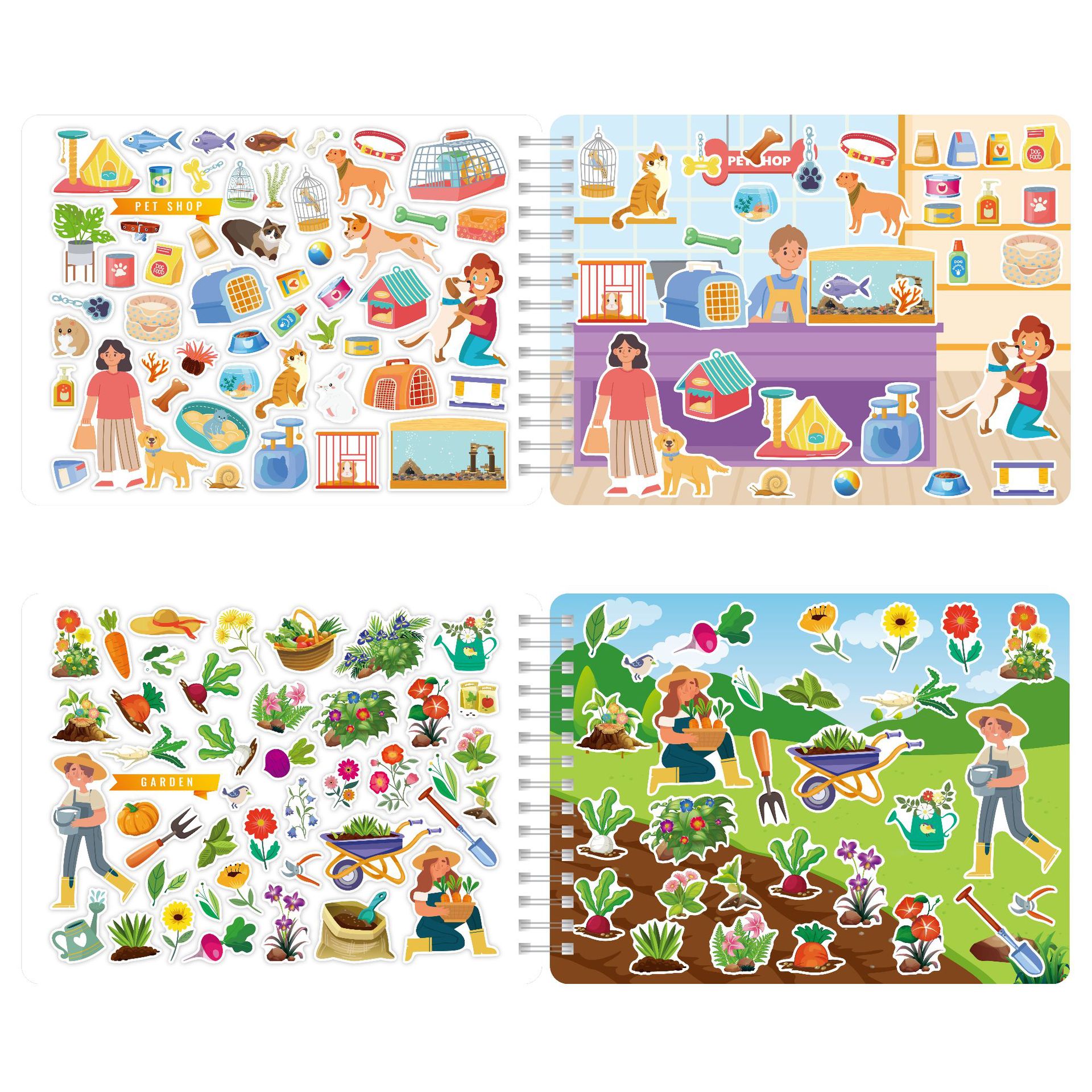Sticker Book: Contains multiple pages of city scene stickers, each with a clear theme and rich sticker elements.