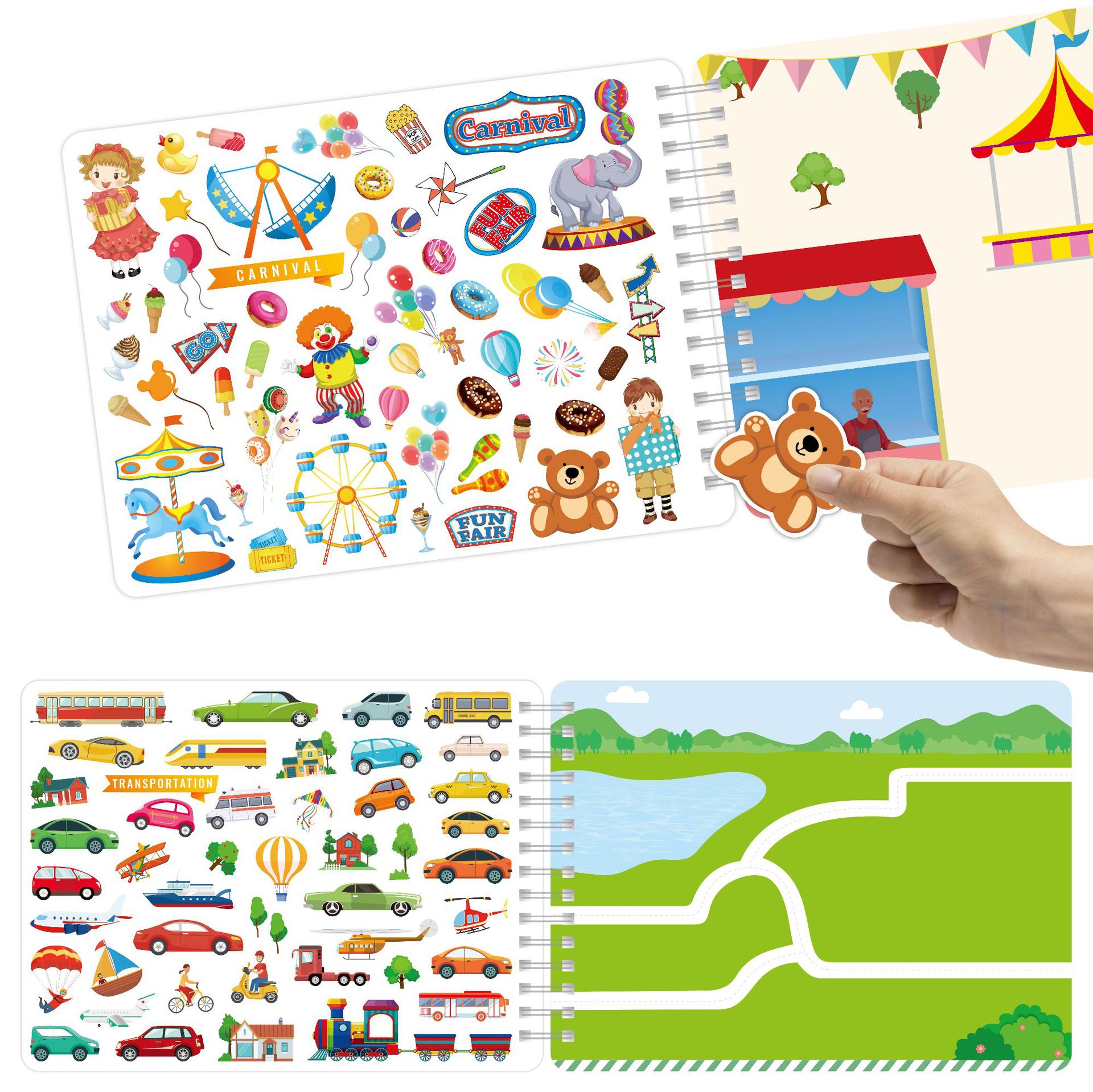 Cross-border sticker books, children's early education, concentration, DIY coloring, city surrounding scenes, can be moved, and paper books can be pasted repeatedly