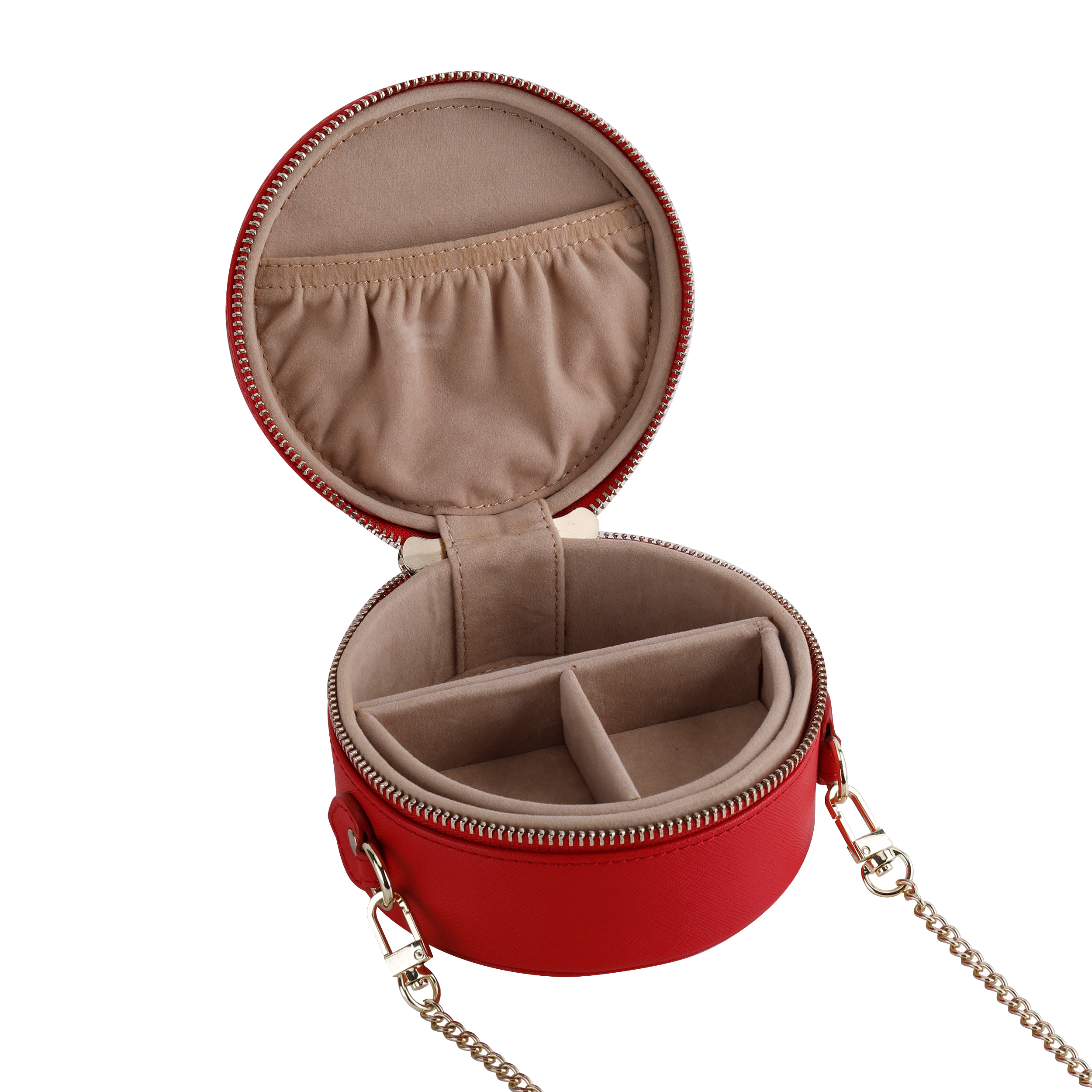 Crossbody portable bag for cosmetic and jewelry, easy to carry for daily outgoing. Flexible High Quality Material - The makeup organizer bag made of quality vegan leather and fabric.This cosmetic bag giving you a high-quality using experience which will last for a long time.