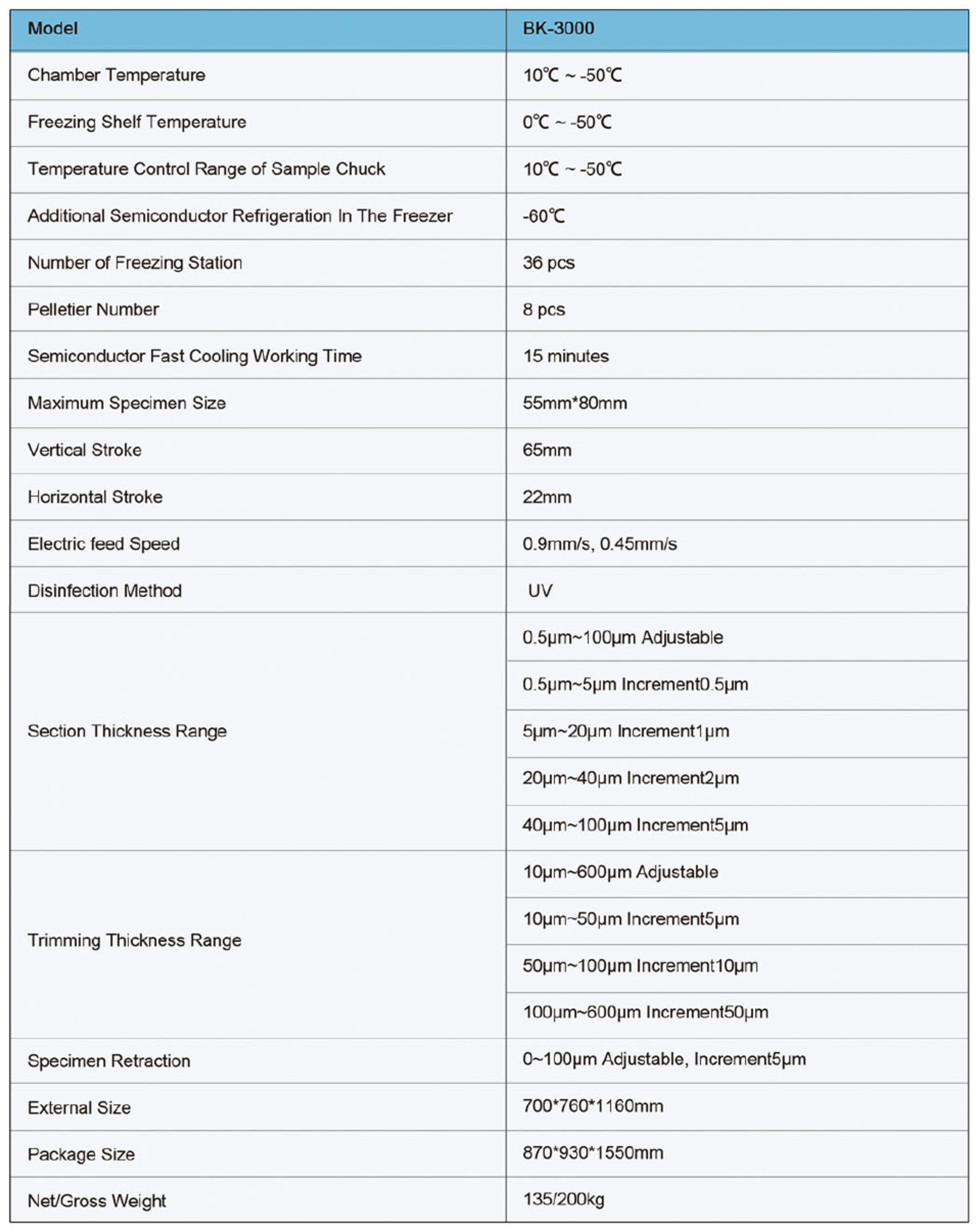 The Bk-3000 Cryostat Microtome is belong to one class medical equipment. It is a device for rapid pathological section analysis of human body, animal and plant tissues.
