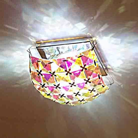 The ceiling lamp features a lampshade comprised of faceted crystals with a glamorous touch. The sparkling light reflects on the ceiling with intriguing patterns. Add elegance to any home decor with this crystal ceiling lamp.
