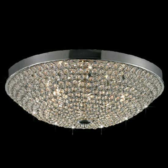 This dome-shaped ceiling lamp comes with sparkling crystals on the cover for a splendid look. The chrome-toned band lends a contemporary touch to the design. This stunning ceiling lamp is ideal for home decoration.