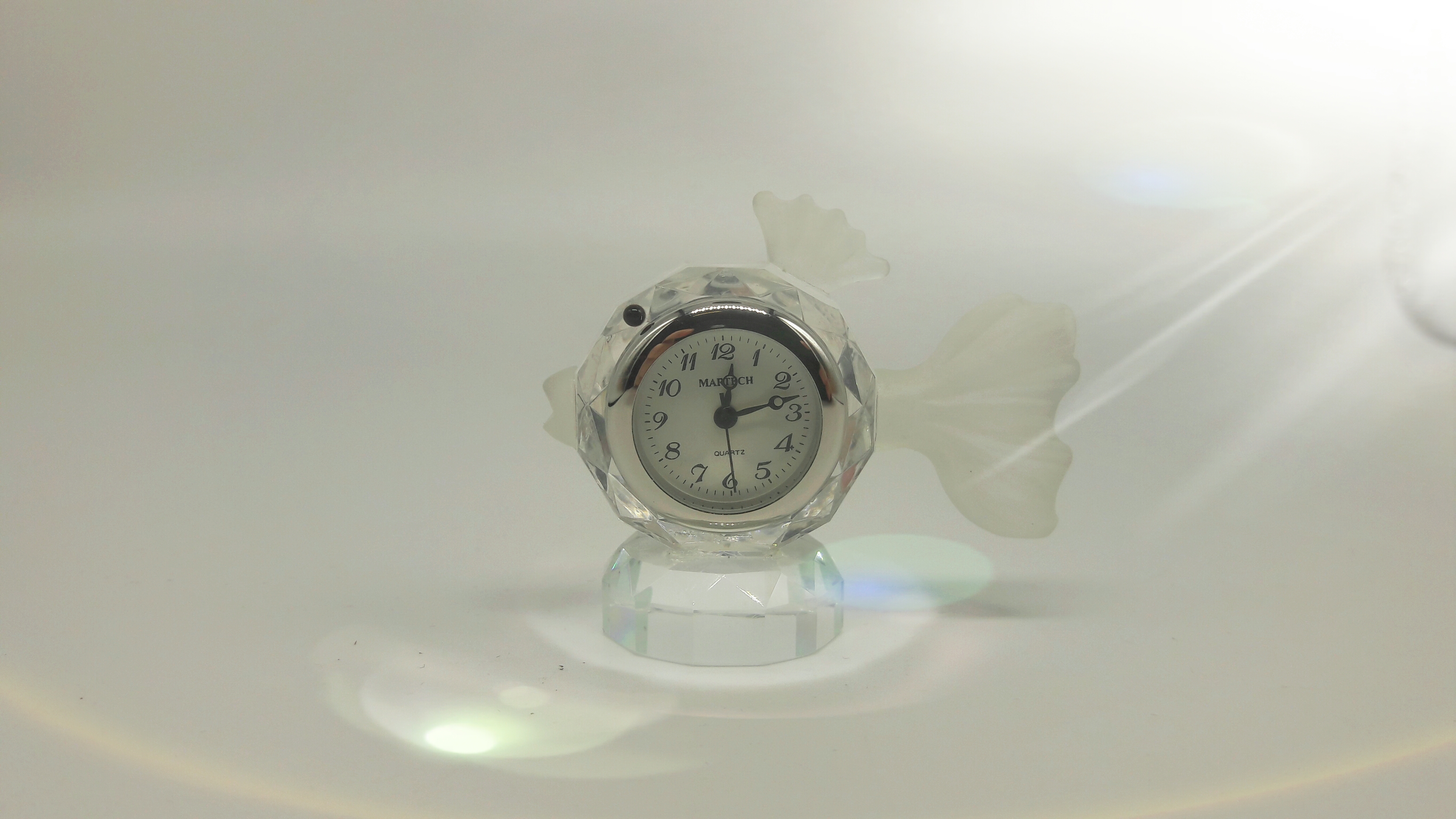 Crystal Fish Ornament with Clock Inlay