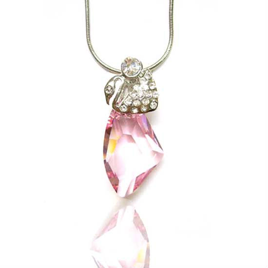 Featured here is a crystal necklace designed for ladies. The swan pendant features a faceted Swarovski crystal stone. Highlight your look with this glamorous crystal necklace.