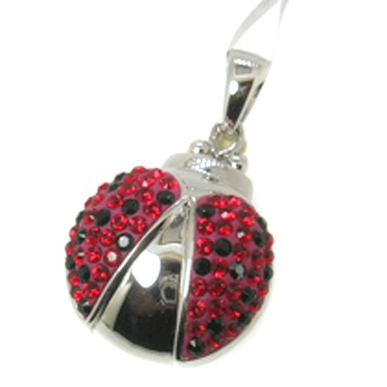 This is a 925 silver crystal pendant. The pendant is designed with a figure of lady bug with multiple small red and black Swarovski crystals on it. It can match different styles of chains.