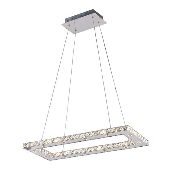 This chrome-plated crystal pendant lamp features a rectangular shape set with faceted crystal pieces. The modern and clean design adds beauty and personality to your home. The energy efficient LEDs provide stable and bright illumination for users.