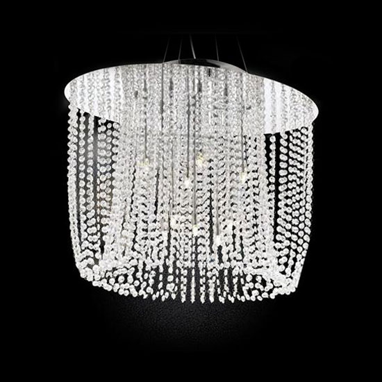 This is a pendant lamp made from white crystal chains. The lamp is made with delicate craftsmanship. It is a wonderful decorative lighting component for both household and commercial settings.