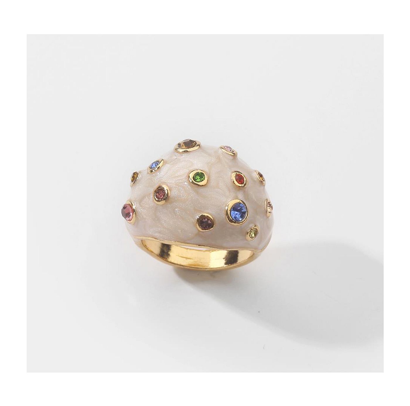 As shown is a high-fashion crystal style gold plating ring with alloy metal materials.