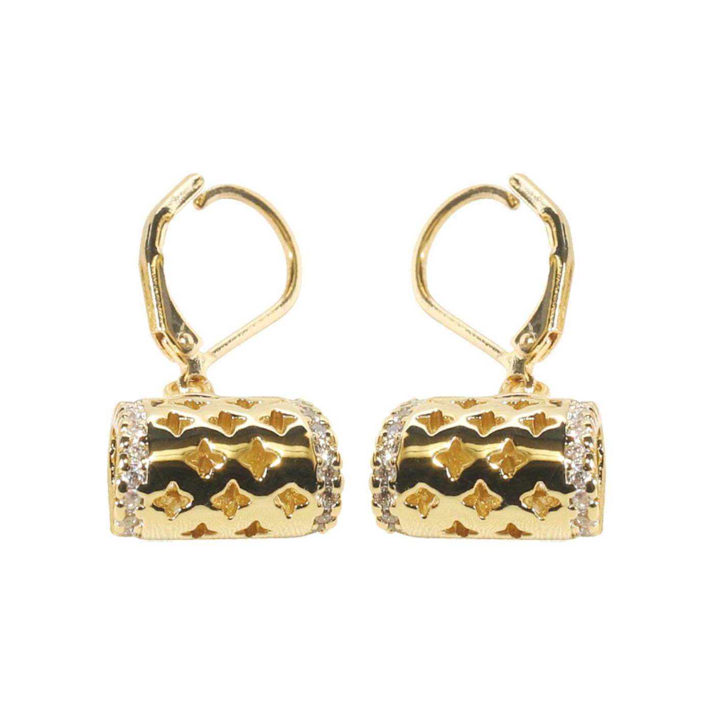 As shown is a high-fashion crystal style gold plated alloy parts drop earring.