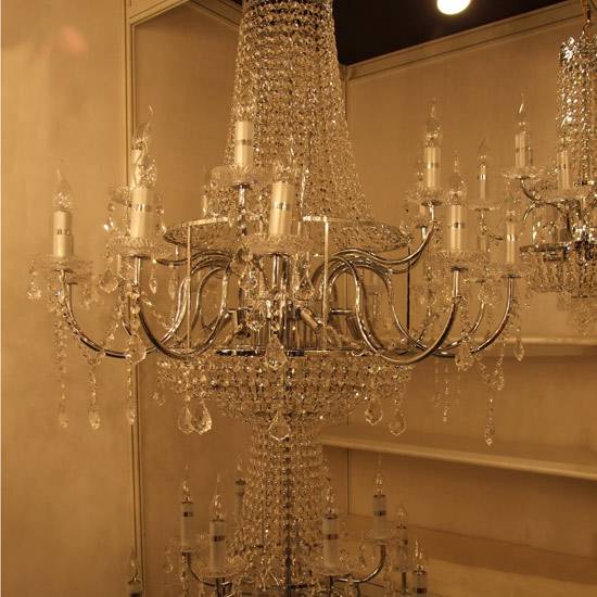 Featured here is a chandelier lightened by 14 bulbs. The frame comes with high gloss finishing. The lamp is designed for grand venues like banquet halls and hotels.