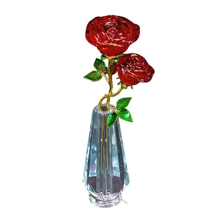 Crystal roses can be purchased as individual roses or along with vases. It is used for wedding gifts, home decoration, etc.
