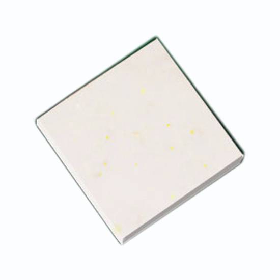 This crystallized glass panel boasts a smooth white surface with golden mottles glittering under the reflection of light. The panel is resistant to water, contamination and weather. This crystallized glass panel is an elegant material for indoor or outdoor conditions.