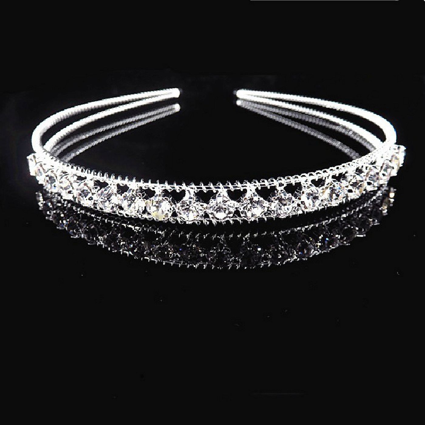 This is a piece of delicate hair accessory highlighted by crystals style silver plated wedding hair band.