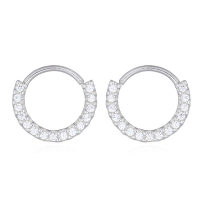 Cubic Zicornia Circle Drop 925 Silver Huggie Earrings