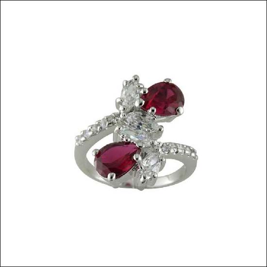 • Sterling silver ring of full circle is decorated with two pieces of red cz in drop shape