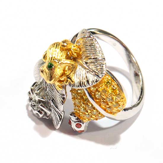 This gorgeous 925 ring highlights a series of attractive animal charms. Each charm is embellished with colored gemstones, shimmering in alluring radiance over the polished shiny surface. The ring also goes with a remarkable heart-shaped charm, which is embedded with cubic zirconia stones to further add on the royal essence.