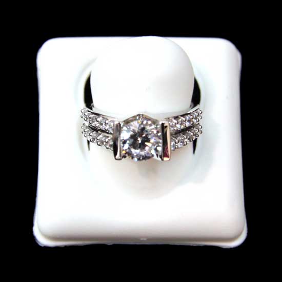 This dazzling finger ring is made of sterling silver. Embellished with glittering cubic zirconia stones, this sterling silver ring showcases a sparkling accent. Ladies will surely fall in love with this delicate cubic zirconia ring.