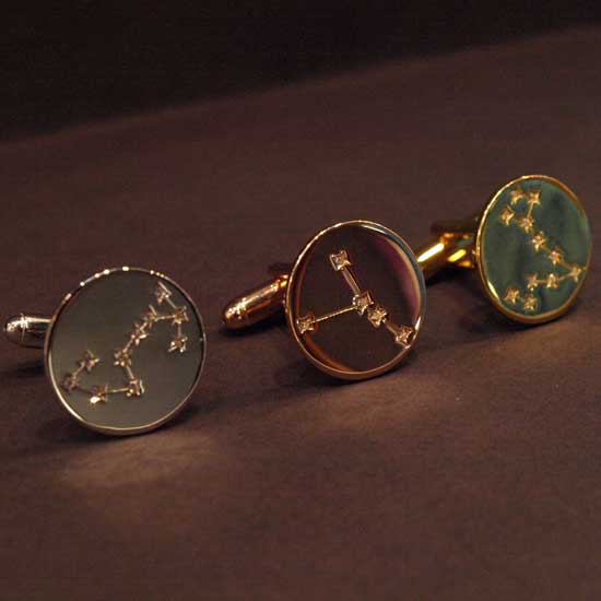 The cuff links come with circular styles. Each cuff link features constellation patterns made up by stones and hollowed lines. The glossy rims add glamorous value to the cuff links. They make delicate gifts for men.