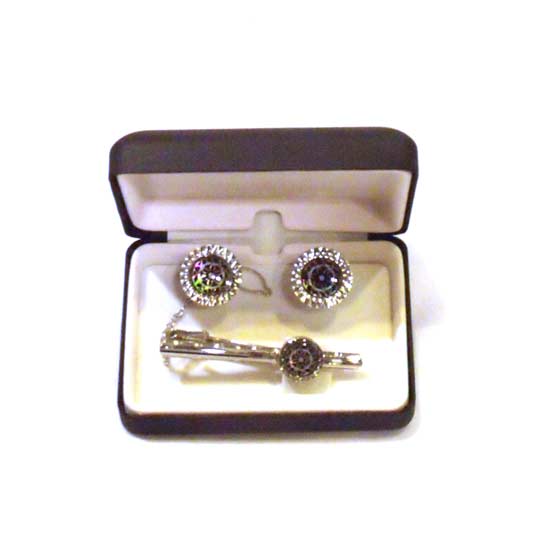 Add a touch of style to your wardrobe with the featured cuff links. They look attractive as they feature a shiny surface. The cuff links are easy to mix and match. A tie clip is also included in the set.