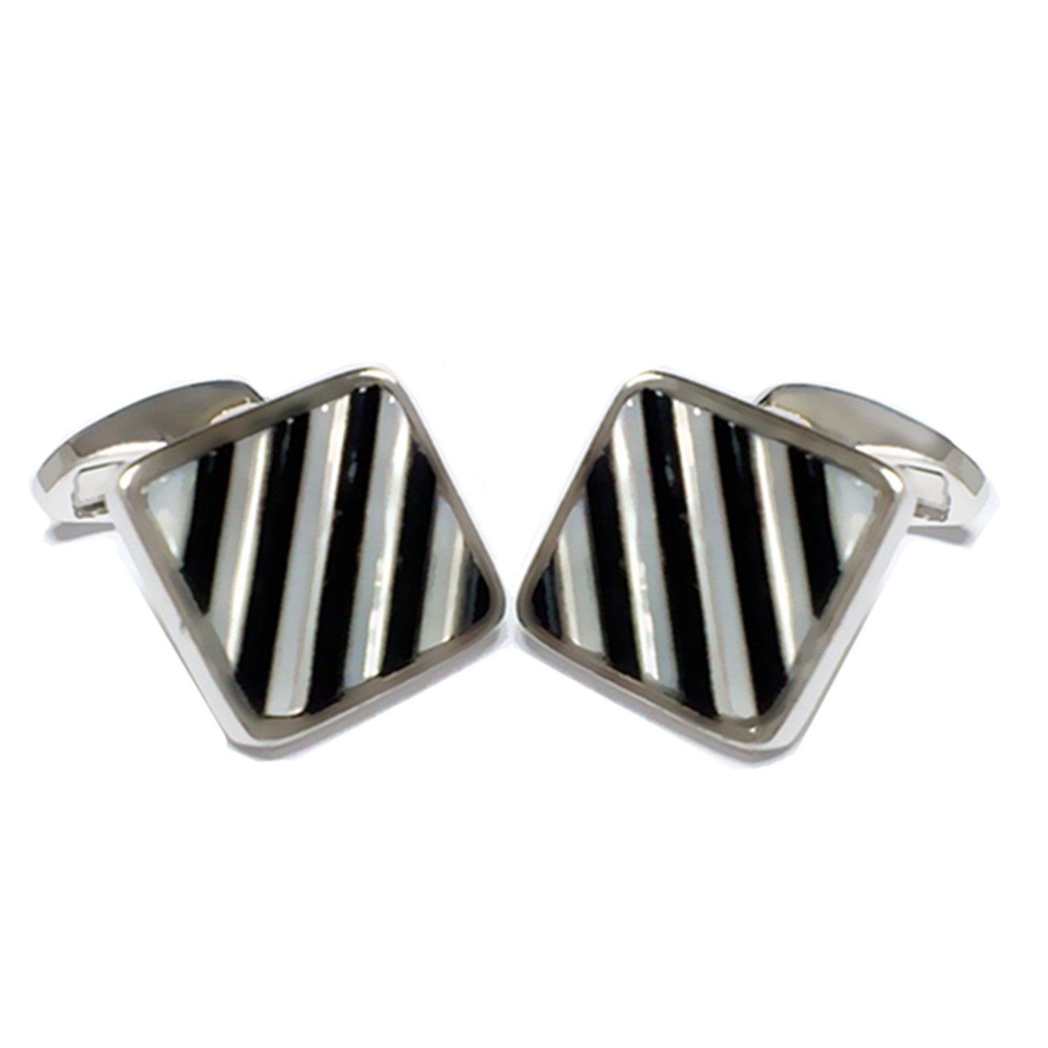 Highlighted is a pair of fashionable cufflinks in shimmering silver construction. The delicate stripped details add a touch of class. The pair of cufflinks is an essential for a complete executive look.
