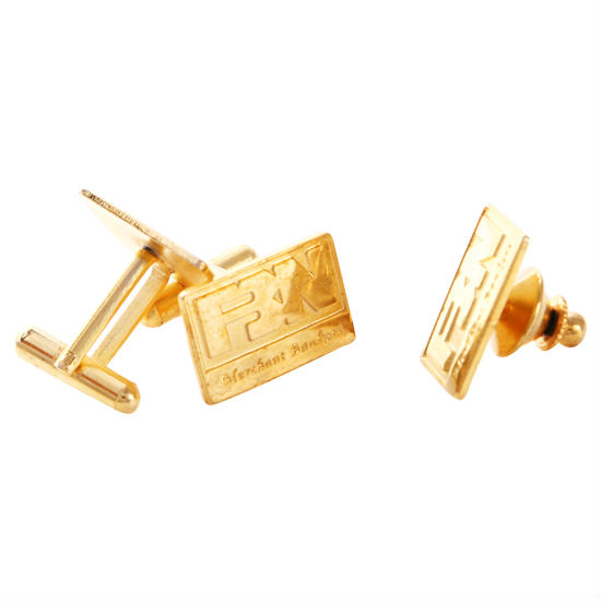 Demonstrate your class with this gold cufflink that accents your formal outfit with a glamorous shine. Embossed logo and wording details take the center stage of the traditional rectangular profile, bringing delicacy to its thin and neat complete. The bullet back closure further secures your cuffs and offers durable use.