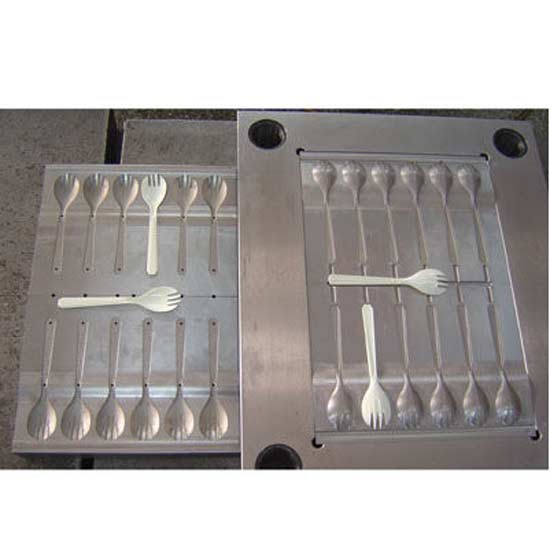 Shown is the mold for manufacturing plastic utensils like forks, spoons or knives. The molds allow you to have mass production on your kitchenware, saving you time and money. Prepare your stable supply of kitchenware by using these sturdy molds. Any other shapes or designs for the mold are welcomed.
