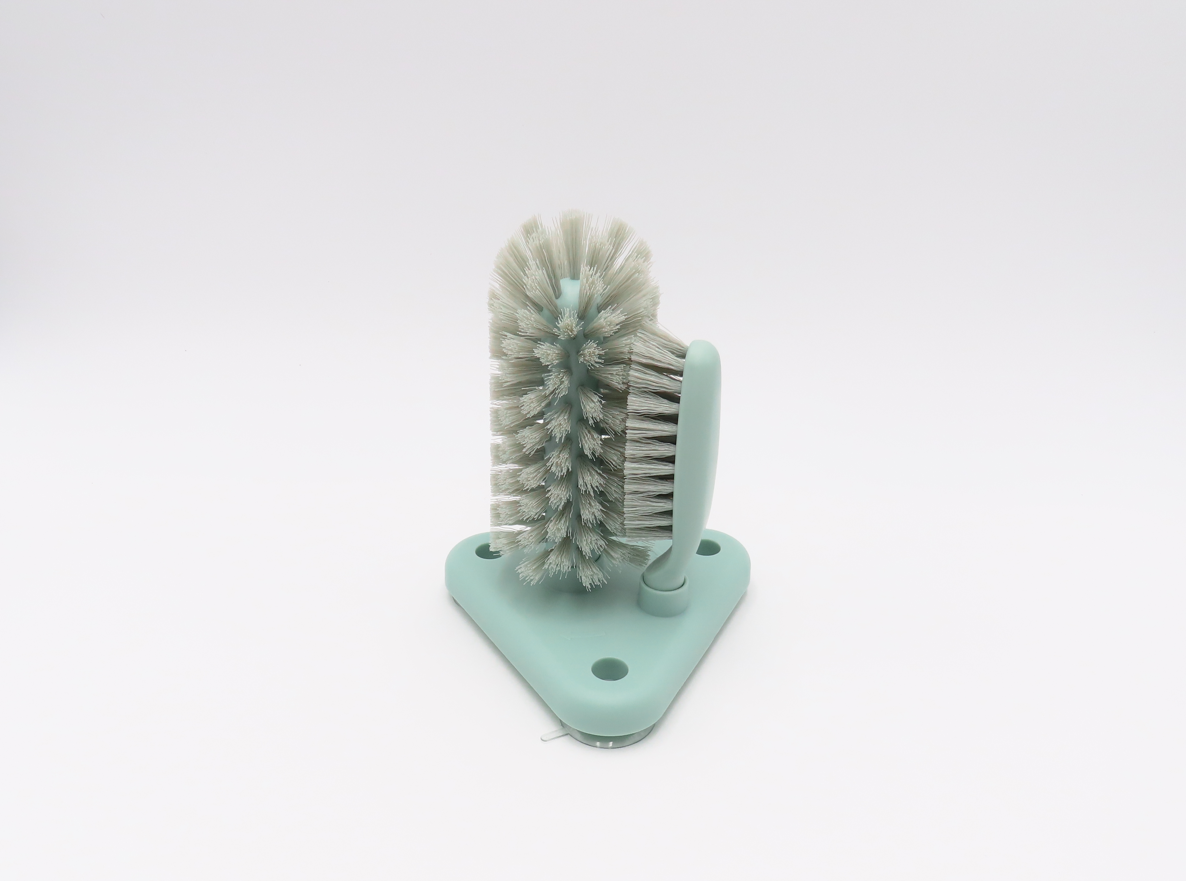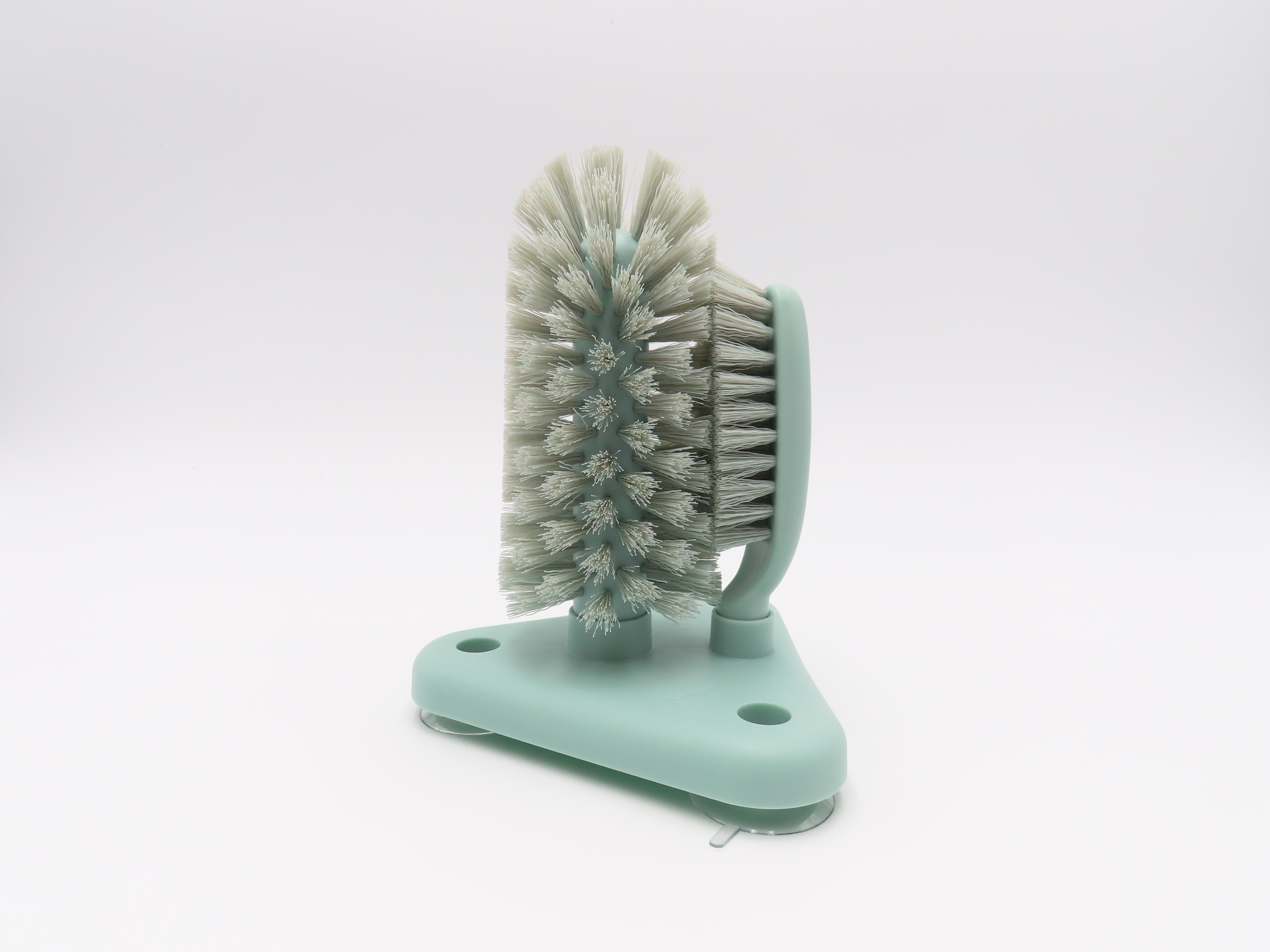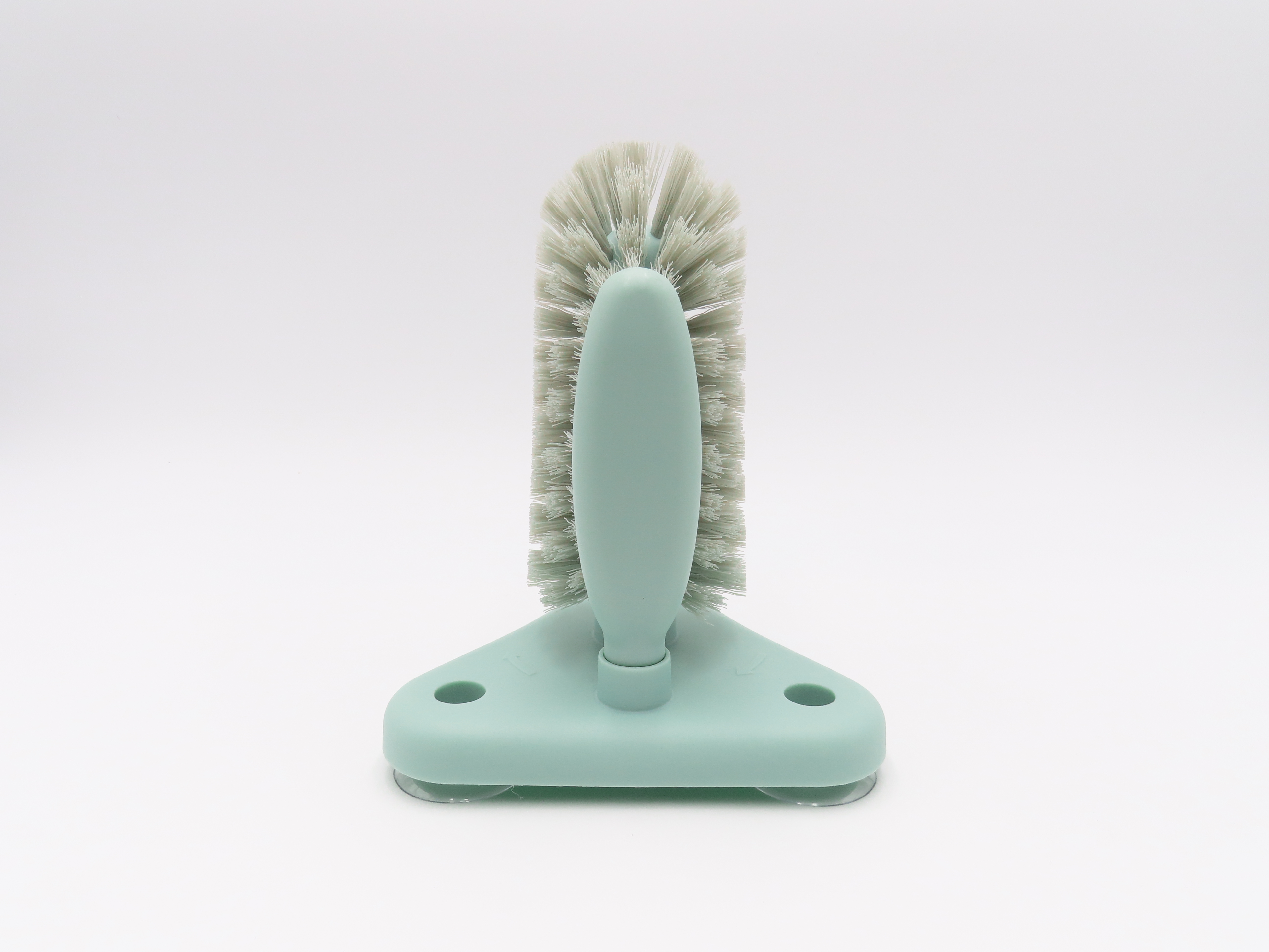 It can simultaneously clean the cup inside and outside by clockwise rotation, 360 degree cleaning. Easy to attach to table and sink by having three big suction cups affixed at the brush bottom. Also, double layers bristle, upper thick bristle aims to clean the smudges at the cup bottom, side moderate to cup body. Perfect cleaning tools for bar kitchen.