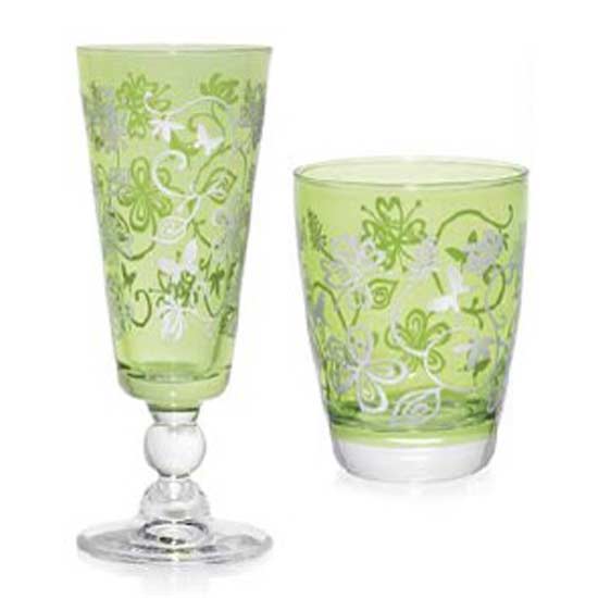 The design of this cup and tumbler set exudes a fresh style. The items are green in color with delicate floral patterns. Attention to details is shown on every part of the tableware.