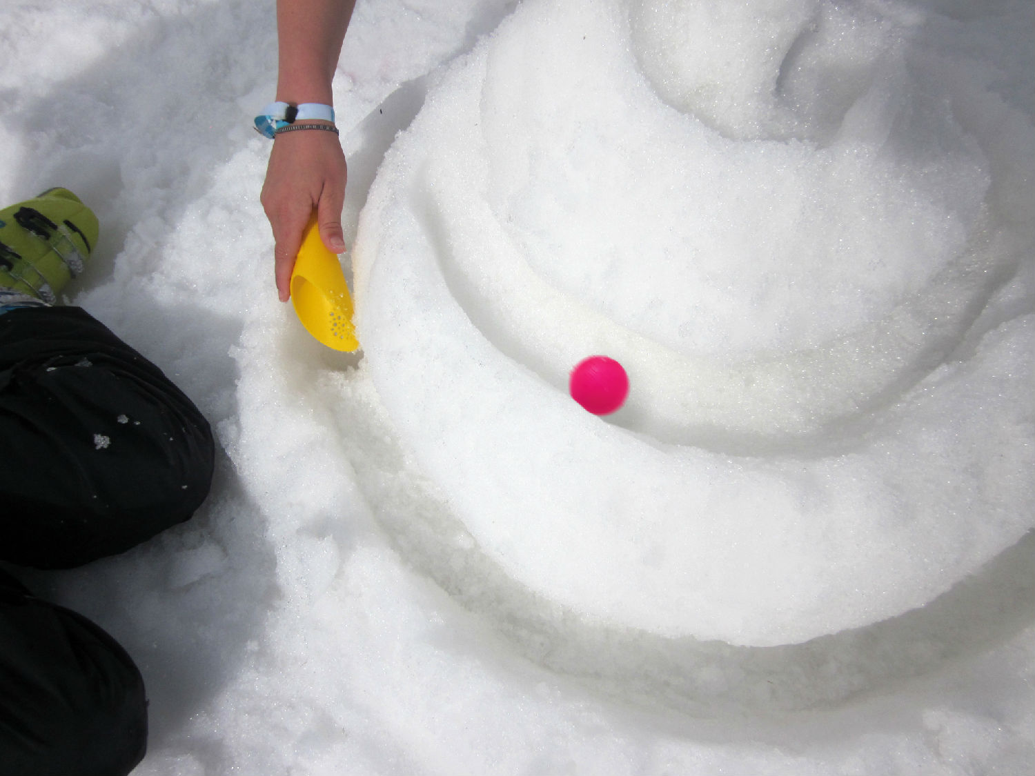Use the shovel to scoop out sand castles and make tracks for the rolling ball.