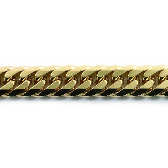 This is a very popular curb chain made in Japan. There are 2 pieces hooked per piece and the weight is strictly kept over the indicated figure. With 6 reflecting faces, you can enjoy the precise metal shine.