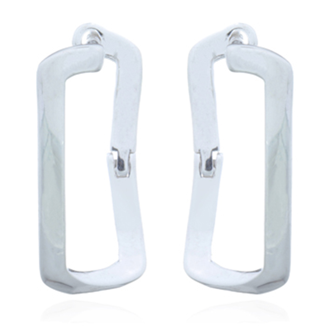 Curly Rectangle Long Silver Clip Hoop Earrings