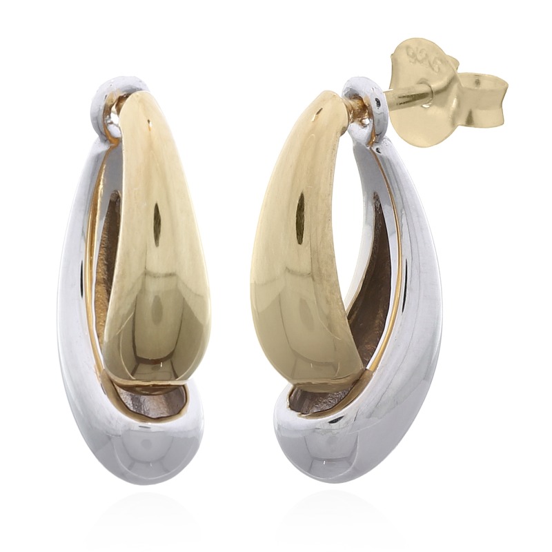 Curve Two-Tone Waterdrop Rhodium and Gold Plated Silver Stud Earrings