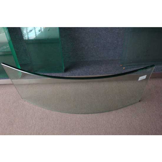 Displayed here is a piece of glass with a curved design. It boasts a tempered construction for enhanced durability. This piece of curved tempered glass is suitable for various building applications.