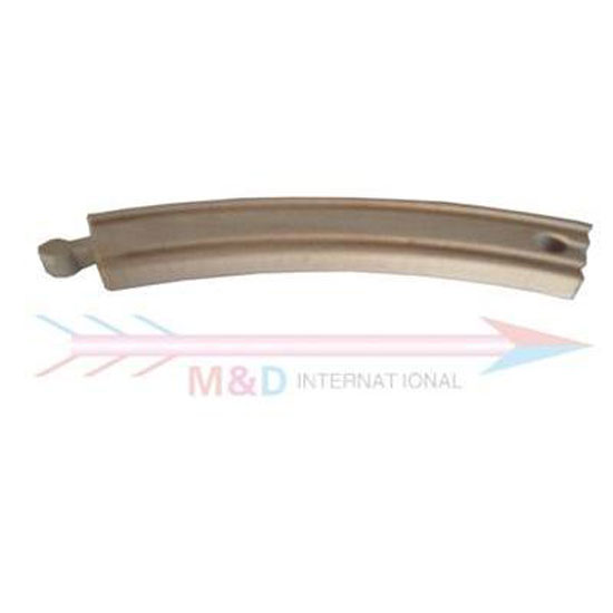 This curvy orbit is an essential part in a toy racing track system. The orbit is finely crafted with two smooth and deep slots for toy vehicles to pass through. It can be connected with other orbits to form a complex track system.