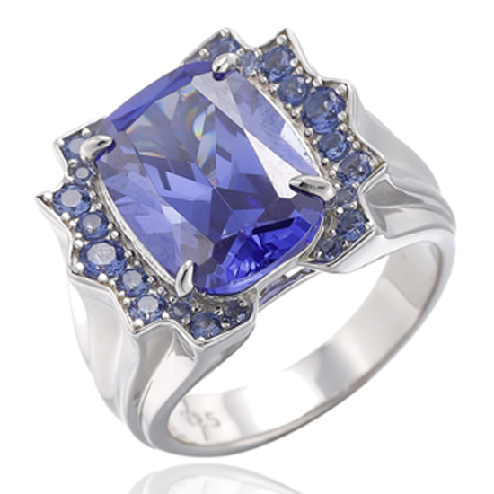 Cushion And Round Tanzanite Cubic Zircon Rhodium Silver Ring