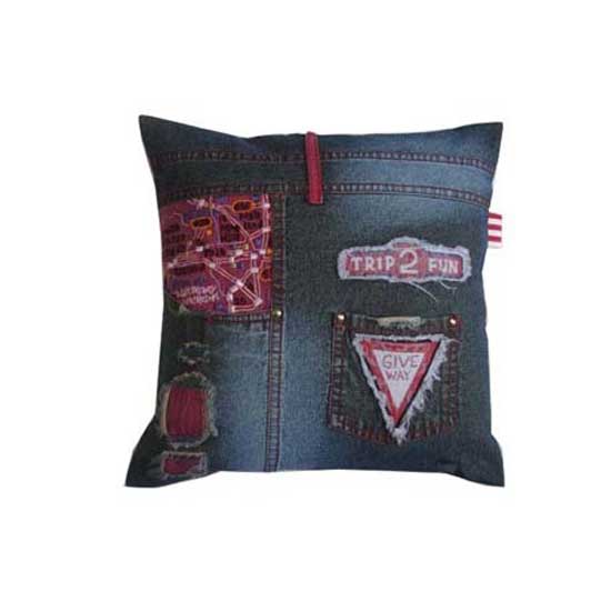 The square-shape cushion cover exudes a strong fashion sense with its ravishing jean design. Dexterous handicraft is unveiled completely with its miraculous details resembling a pair of jeans. Leave your guests a perfect impression of your extraordinary taste in home furnishing by updating your home decor with this cushion cover.