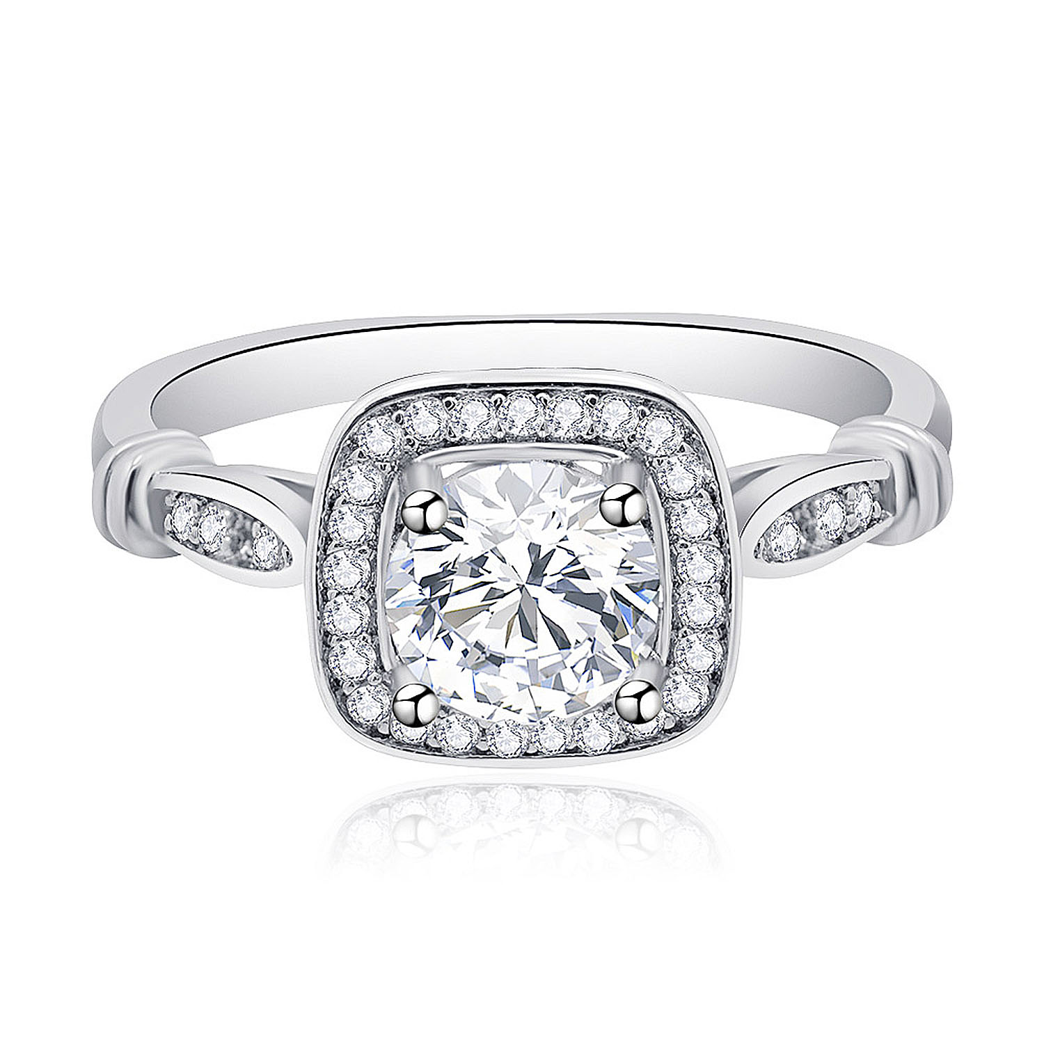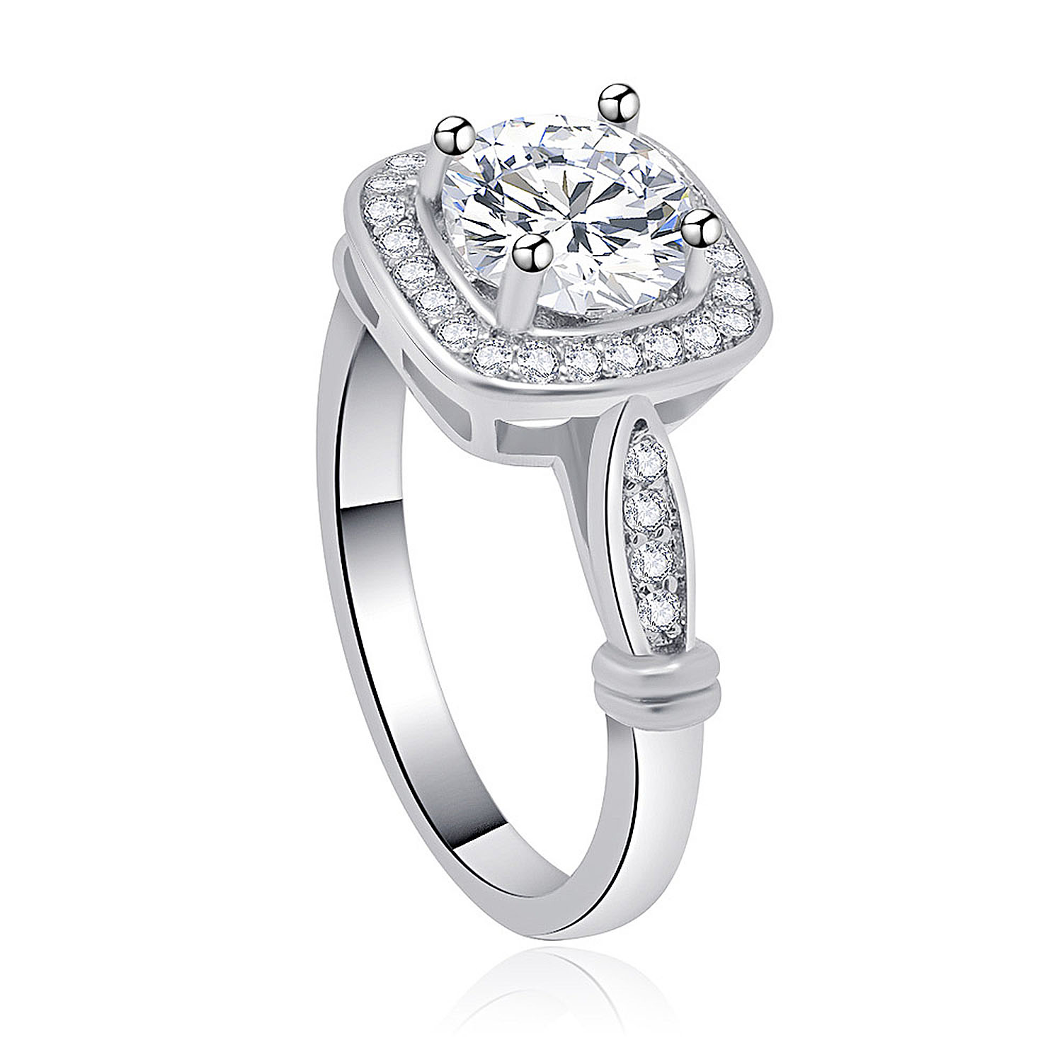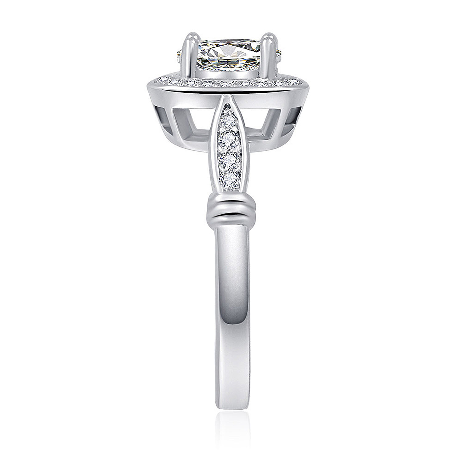 The Cushion Cut Halo with Pave Band Ring you give will shine as a beacon of your love for her, and a reminder that you are partners till the end. Don't ask her too often to walk ahead of you, nor behind you, but walk alongside her, and you will never lose sight and stray from your dreams