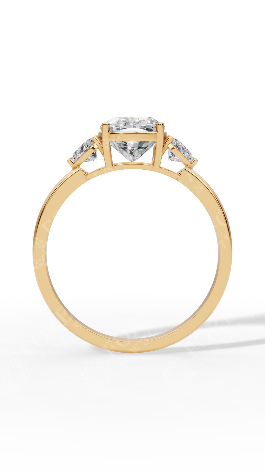 Cushion Cut Trio Ring With Heart Cut Solitaire Lab Grown Diamond