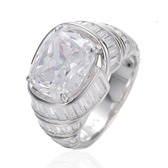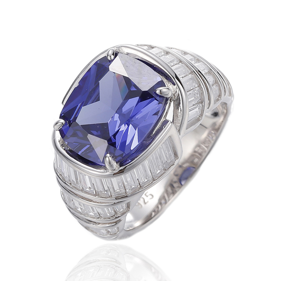 Cushion Tanzanite And White Cubic Zircon Rhodium Silver Ring