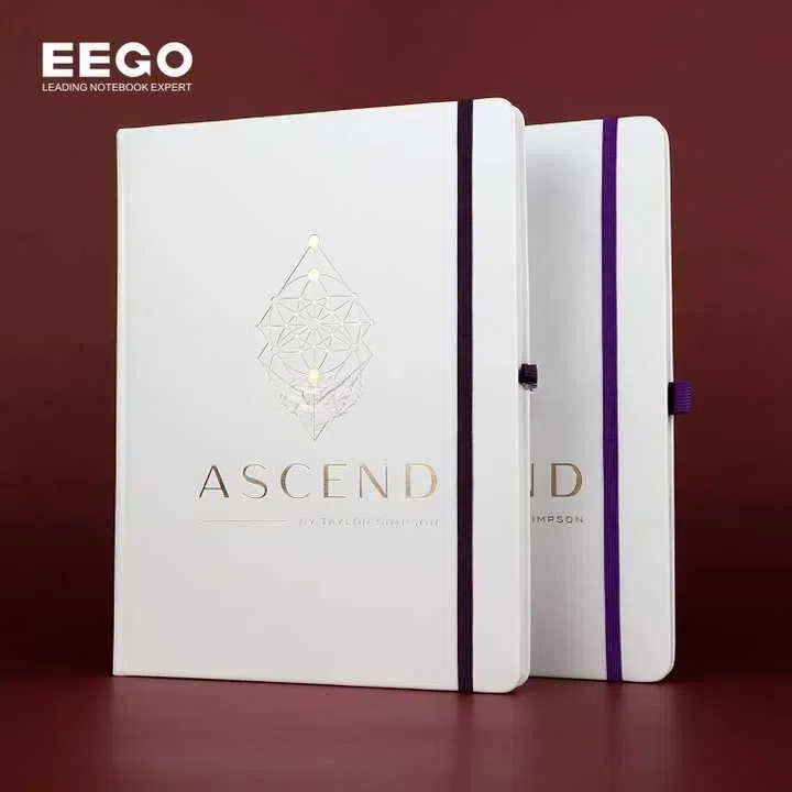 Custom A4 PU Leather Bound Journal 8x11 Note Books with Gold Logo Personalised White Notebook Elastic Band Pen Printed Style