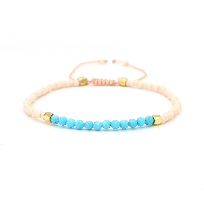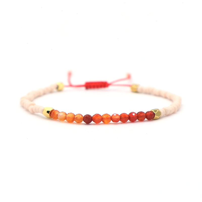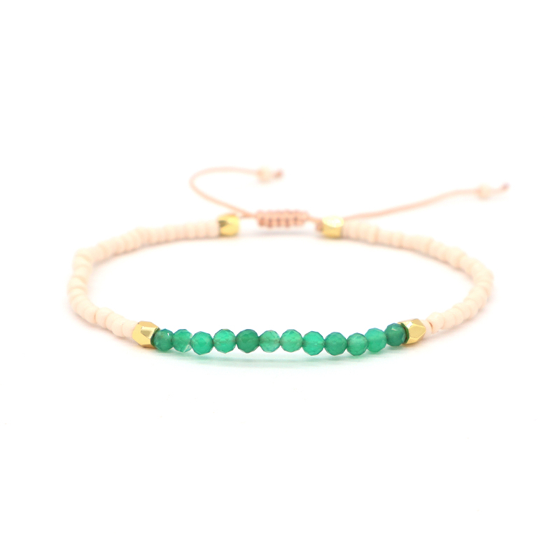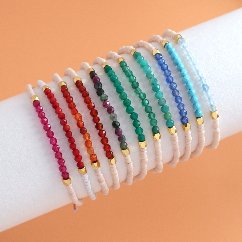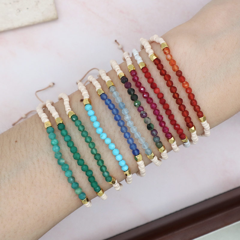 Custom Adjustable Gold Plated Charm Natural Stone Beads Woven Macrame Handmade Bracelet