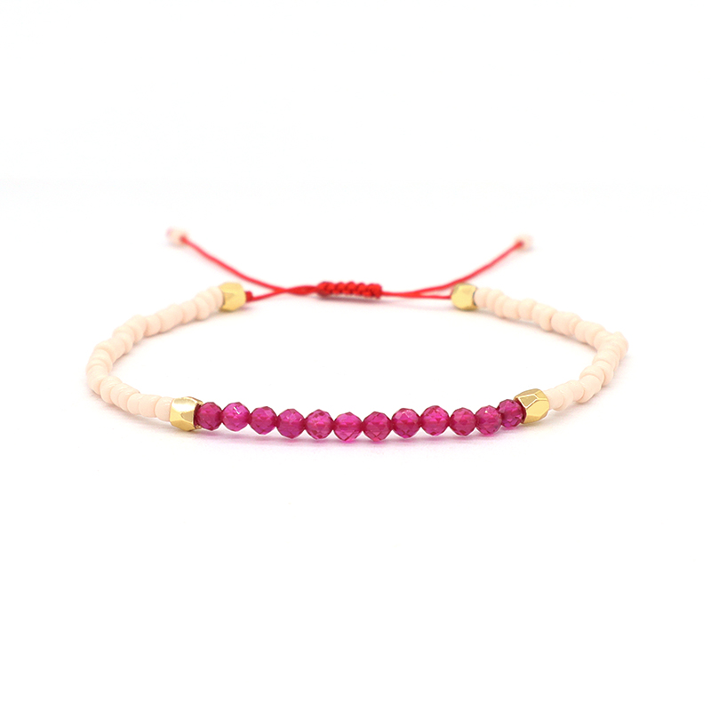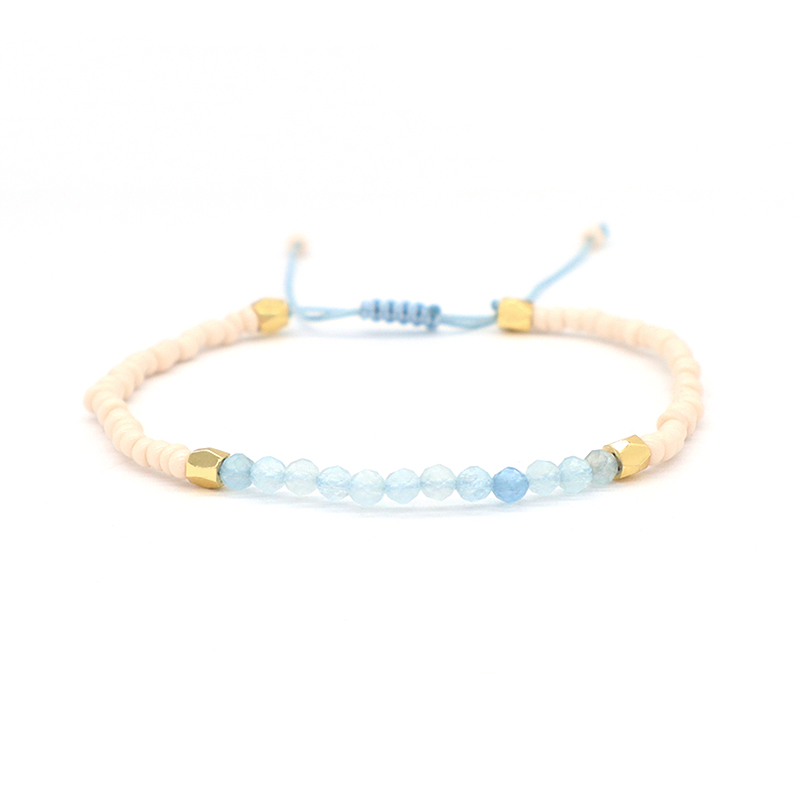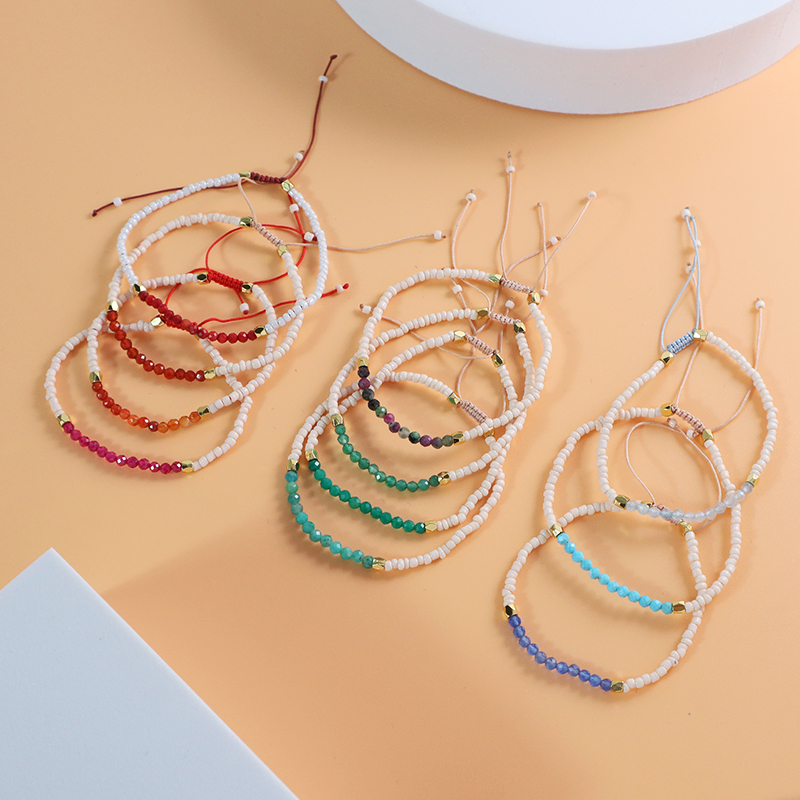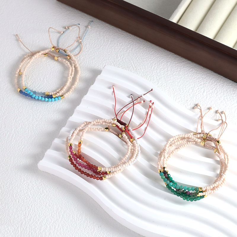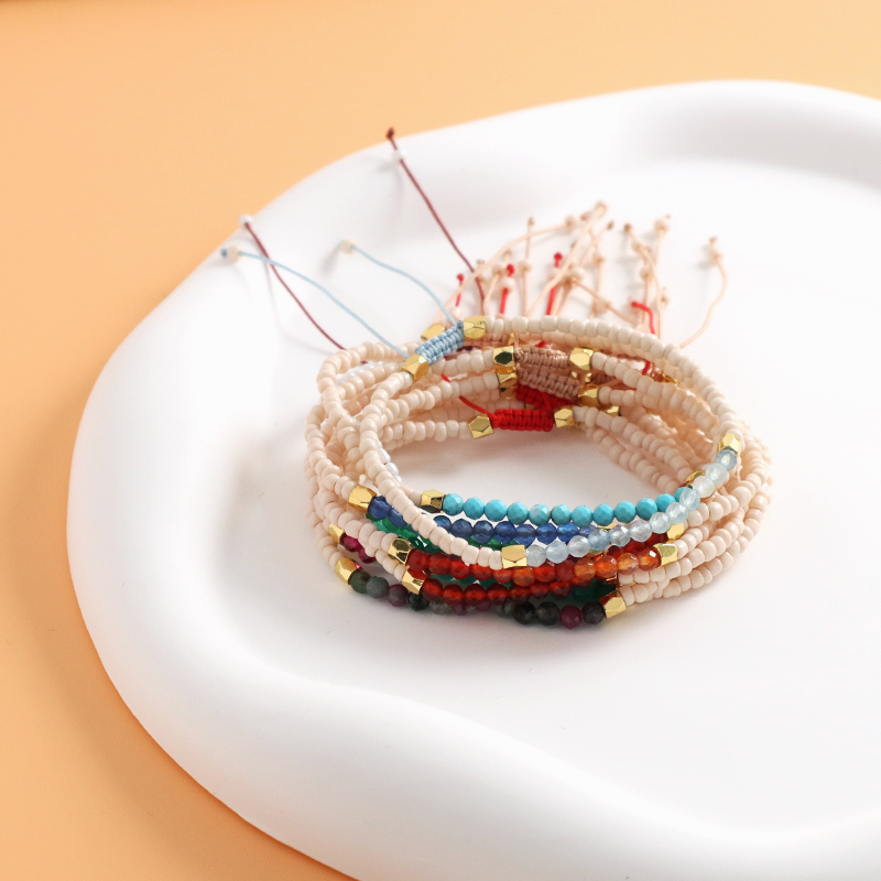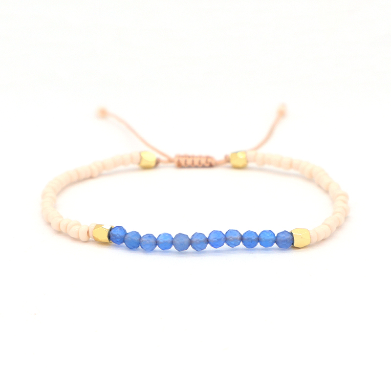Custom Adjustable Gold Plated Charm Natural Stone Beads Woven Macrame Handmade Bracelet
