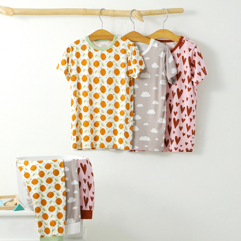 Custom Bamboo Sleepwear Set for Toddler Kids 95% Bamboo Viscose 5% Spandex Printed PJ Set OEM/ODM Services
