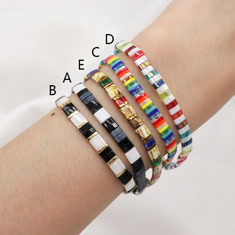 Custom Colorful Miyuki Bracelet Jewelry Elastic Boho Flat Tila Handmade Miyuki Seed Bead Bracelet