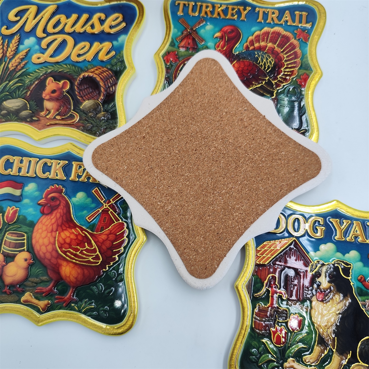 Non-Slip Cork Base: Each coaster is backed with a soft, natural cork layer that prevents sliding on smooth surfaces and protects delicate tabletops from scratches. The cork also absorbs minor moisture, keeping your surfaces dry.